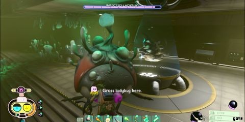 プレイヤーが感染したてんとう虫を倒すと、トリュフ タッスル変異のロックが解除されます . スーパー チップに通じるドアを慎重に開ける時です。 、その隣にある奇妙な胞子に気をつけ、ドアから感染したダニに対処します.ドアの内側には、Haze Lab BURG.L スーパー チップがあります。 は左側のテーブルにあり、ブラットバースト爆発物などの収集品も近くにあります。