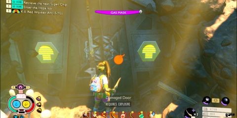 プレイヤーはヘイズを生き延びて入り口に到達する必要があるため、Tier 2 シャベルで収穫したガムでキャニスターの穴を塞いでガスを止めるか、防毒マスクを装備する必要があります。 保護のために。ヘイズをオフにすることは必須ではなく、プレイヤーの選択ですが、ラボを見つけるのが少し簡単になります.
