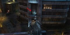 4 番目のタロン キャッシュは、ニュー ゴッサムのバワリー地区にあります。プレイヤーは、Scituate Street の中央にある (地図上にマークされている) ファルコーネ レジデンスの建物に行く必要があります。 Talon Mural は、「Falcone Residence」の看板のすぐ下にあります。プレイヤーはそれを調べると、8,000 EXP、N 番目の金属、エレクトラム、および有機合成物を受け取ります。