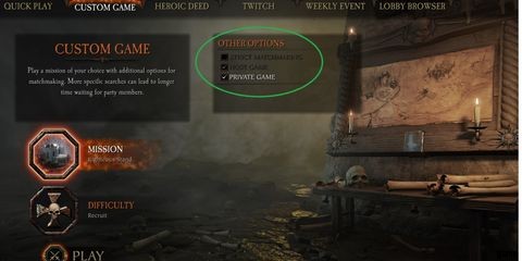 - ミッションを選択> カスタム ゲーム> プライベート ゲーム