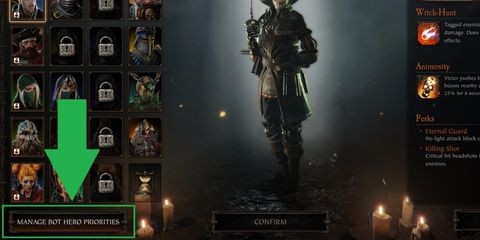 使用するボットを選択するには、ヒーロー選択画面の下部にある [ボット ヒーローの優先順位を管理] ボタンに注意してください。それをクリックして、各キャラクターの理想的なキャリアを選択してください。各キャラクターをクリックして上下にドラッグし、ヒーローの優先度を正しくします。上記のチャートは、推奨される優先度順にリストされています。