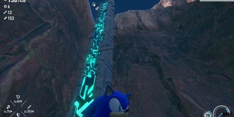 バンパーボタンを使って塔を壁が駆け上がり、崖の頂上に向かいます。通過する青い正方形の次の行を探します。最後の正方形は、そのポータルの列にあります。最後のポータルは、残りの四角形よりもわずかにぼやけたテクスチャになります。カバーする必要がある全体の領域はかなり小さく、ソニックはソニック フロンティアのソニックであるため、プレイヤーはこのパズルを理解したら、十分な時間をかけて完成させる必要があります。 早く行かなきゃ。