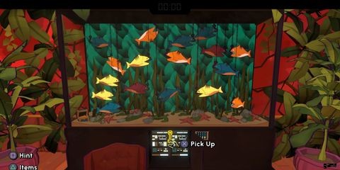 また、後壁に沿ったマネージャーのオフィスには、下にキーパッドが付いた大きな水槽があります。パズルでは、下のコンパートメントを開くために色と数字を正しい順序で配置する必要があります.