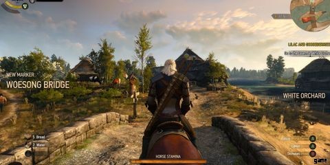 カットシーンが終了したら、コントローラーの X/A ボタンを押したまま、馬に乗ったヴェセミルを追いかけます r.ウィッチャーは最終的にホワイト オーキッドに到着し、宿屋、鍛冶屋、商人、およびいくつかのクエストがマップ上の黄色の感嘆符で示されます。