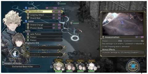 シャドーステップにより、アンドリアスは意図したターゲットの背後に移動してダメージを与えることができます。現在の状態異常を持つ対象の敵は、より多くのダメージを受けます。このスキルは威力 350、コスト 20 EP、クールダウン 5 秒です。