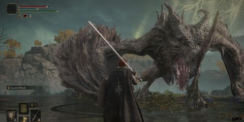 Flying Dragon Agheel は、最初に遭遇する多くの巨大なドラゴンであるため、弱い装備しか持っていない初期のプレイヤーにとっては非常に威圧的です.ボスはドラゴンバーン遺跡の北に現れ、上から火の雨を降らせた後、遺跡とその周辺の湖エリアに落ちます.変色者がドラゴンを倒すと、5,000 ルーン と ドラゴン ハート 1 つ 報われます。このハートは、沿岸の洞窟を通り抜けて発見されたドラゴン・コミュニオンの教会に持っていくことができます。両方の場所はリムグレイブの一部でもあります.