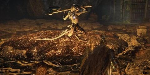 アギール サウス レイクの南には、ブラッドハウンド ナイト ダリウィルをボスとするフォーロン ハウンド エバーガオルがあり、彼の裏切りのために永遠にそこに閉じ込められています。プレイヤーが彼を倒すことに成功した場合、ブライドは喜ぶが、1,900 ルーン も受け取る。 と ブラッドハウンドの牙 曲がった大剣。