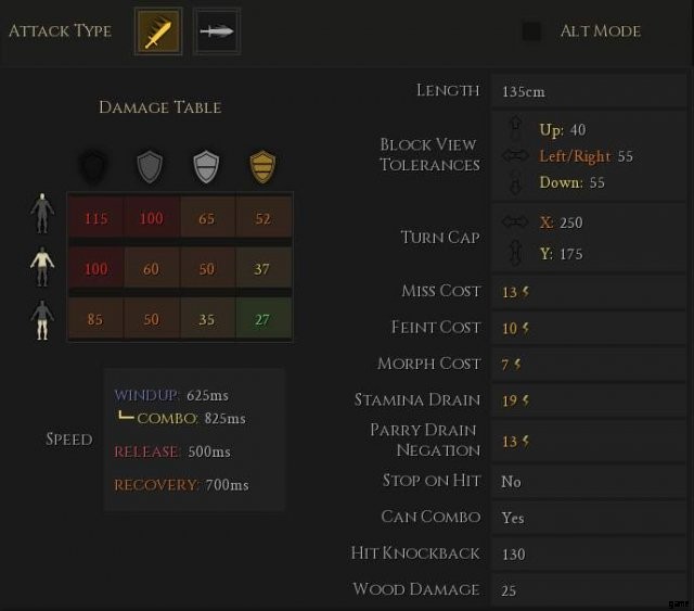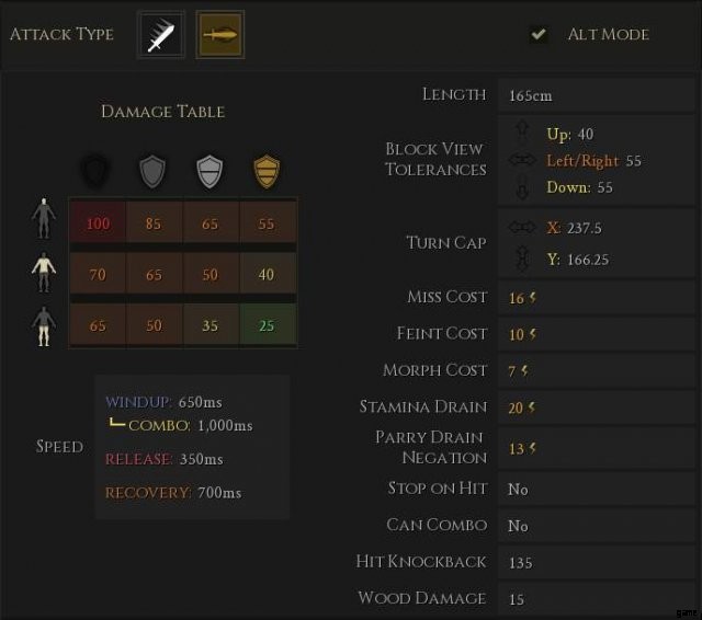 - 他のハルバードに対しては、グリップ スイッチに注意してください。それ以外の場合は、他の同じ長さまたはより長い武器と同様に扱います