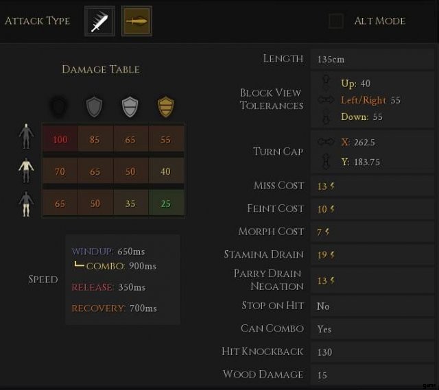 - 短い武器に対しては、敵のスタミナを削るために刺すことで安全に圧力をかけることができます