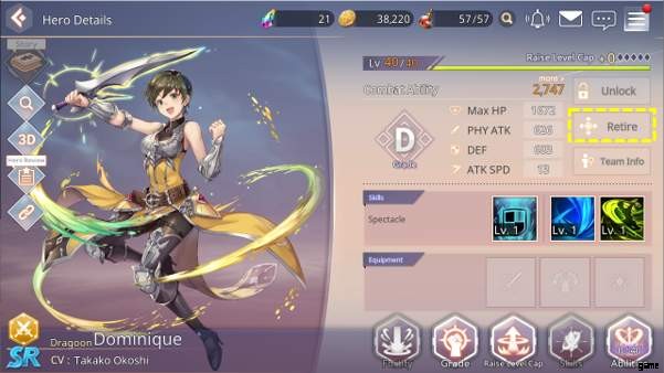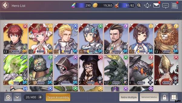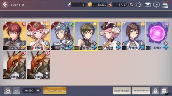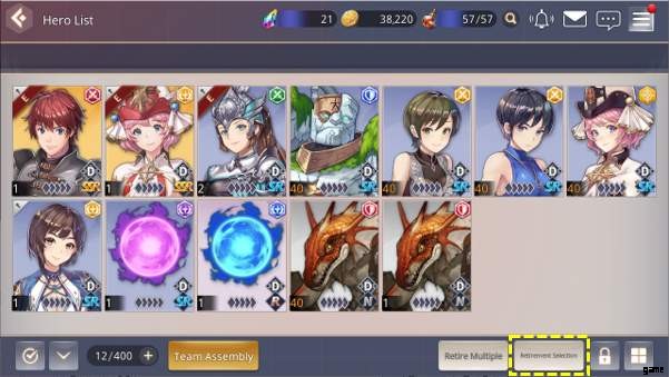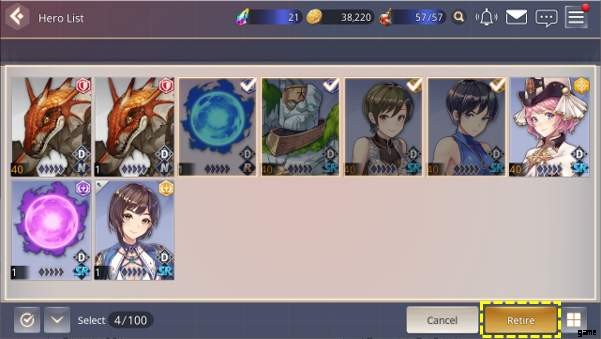 引退したいヒーローを選択し、「引退」ボタンをタップして、複数のヒーローの引退を完了してください!