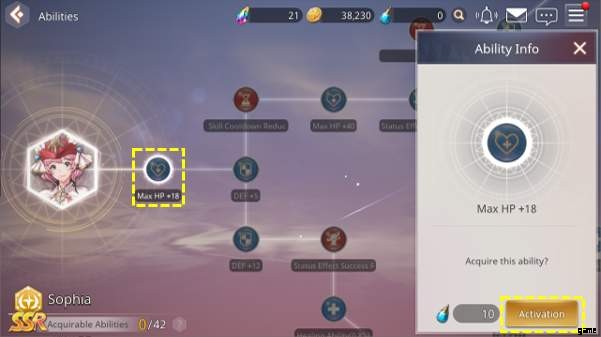 アクティベートしたい順に能力を選択し、アクティベーションボタンをタップしてください。