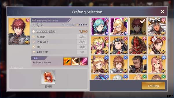入手した素材を使って、ヒーローやアイテム、スキルストーンなどをクラフトできます。