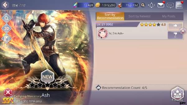 レビュー画面で、他のユーザーからのレビューと、選択したヒーローの総合スコアを確認できます。