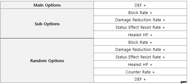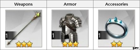 標準装備は武器、防具、アクセサリーの3種類。装備は、装備の種類に応じて特定のスロットに分類されます。