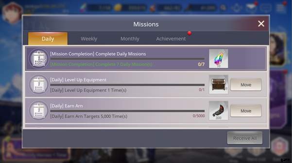 デイリー ミッションを完了して、デイリー アイテムと D-ジェムを獲得してください。