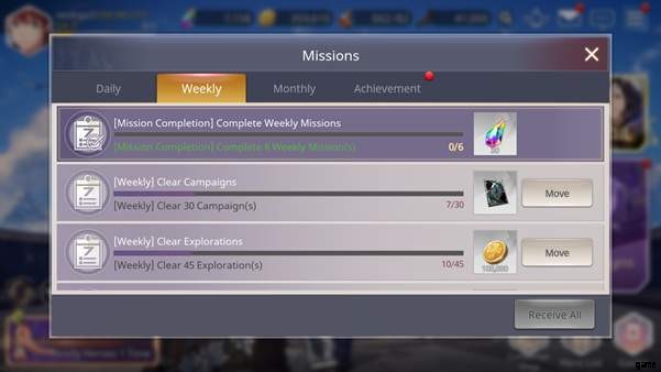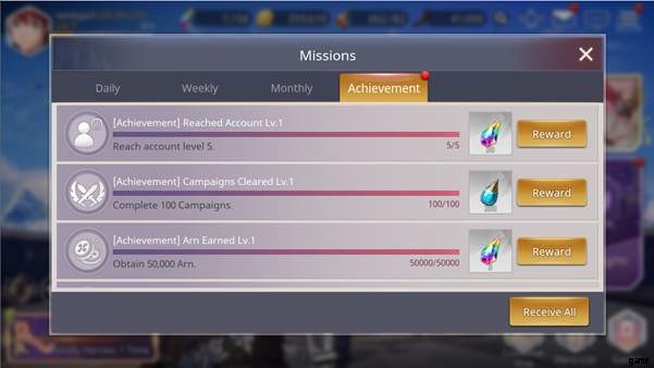 デイリー、ウィークリー、マンスリー、およびアチーブメント ミッションを完了すると、報酬を獲得できます。