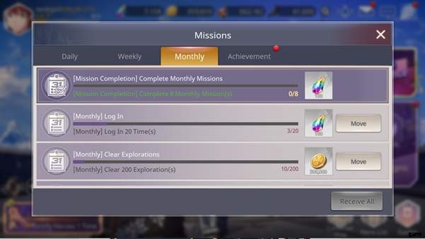 マンスリー ミッションを完了して、マンスリー アイテムと D-ジェムを獲得してください。