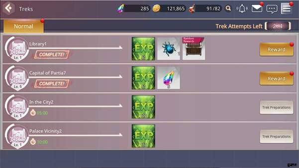 強化素材、エッセンス、Dジェムなどのアイテムは、トレックのサイトで入手できます。利用可能な報酬と完了時間は、各 Trek サイトによって異なります。