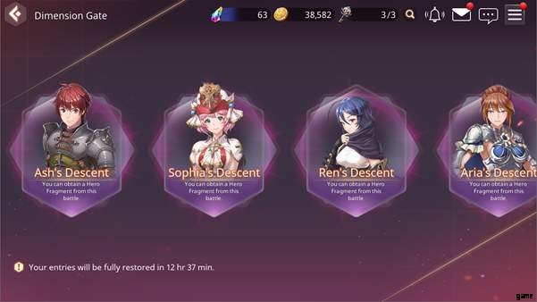 ディメンションゲートは、各ステージの指定されたヒーローの魂の欠片を獲得できるダンジョンです。