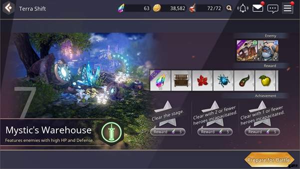 ミスティックの倉庫は、ヒーローのアップグレード素材が見つかるダンジョンです。ランダムで獲得できるアップグレード素材は5種類です。