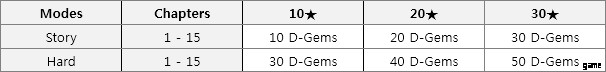 クリア条件を満たすと最大3つ星を獲得できます。各スターの報酬として D ジェムを獲得できます。