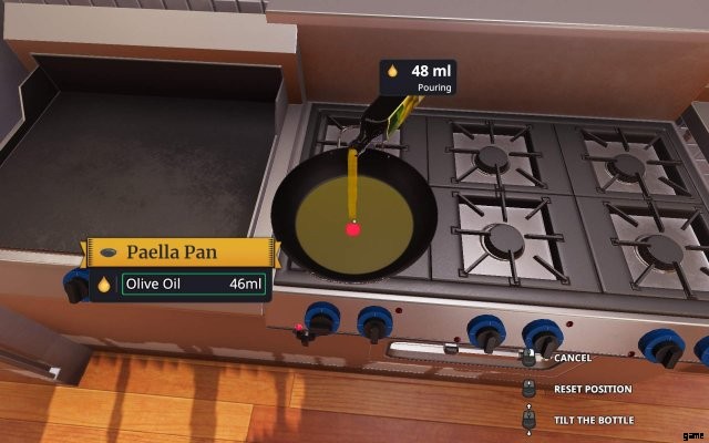 70 ml のオリーブ オイルをパエリア パンに注ぎます!