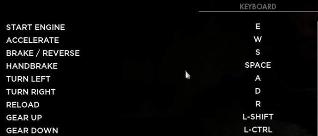 コントロールはオプションにありますが、ドライバー シートのデフォルト キーは次のとおりです。