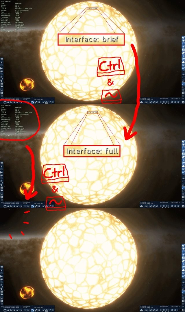 SpaceEngine のビジュアルは、消費者や宇宙愛好家が利用できる最もリアルなものの 1 つですが、グラフィカル インターフェイスを削除する明白な方法がないため、Steam のスクリーンショット セクションにアップロードされたスクリーンショットには、多くの場合、ウィンドウの境界に沿って多数のオプションと読み出しが含まれます。このガイドが SpaceEngine の写真の改善に役立つことを願っています!