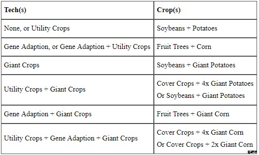 - 最高のものを探したくない場合:大豆とじゃがいもを組み合わせます。後の技術では、大豆を果樹に、(巨大) ジャガイモを (巨大) トウモロコシに置き換えます。