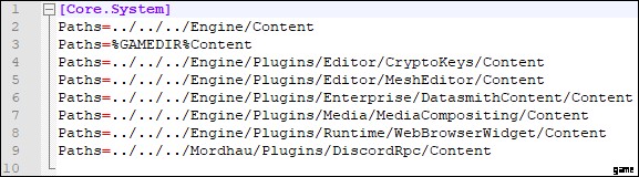 - Engine.ini ファイルのファイルパスは次のようになります: