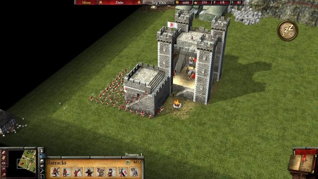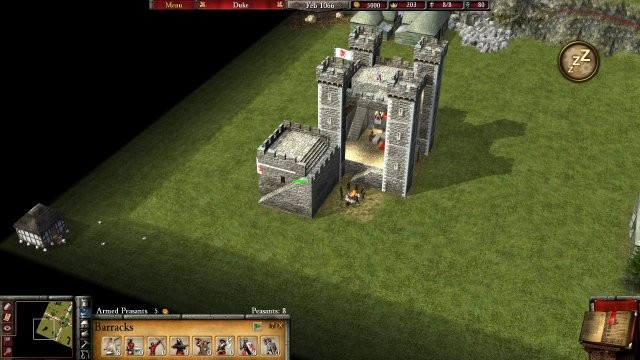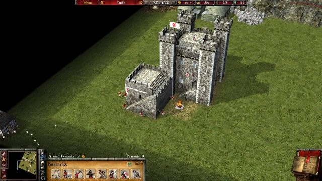 兵舎をどこかに配置したら、ゲームの一時停止を解除し、武装した農民を募集します。 1 つにつき 5 ゴールドの費用がかかり、もちろんお金が尽きない限り、好きなだけ手に入れることができます。