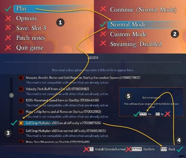 Dead Cells – Mod サポートを有効にして、新しい / 別の Mod で実行を再開する方法