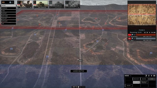 So at this point you have placed all units on the map you know how to give them movement orders so give them movement orders and then you are ready to start the skirmish so now click on “launch battle”.