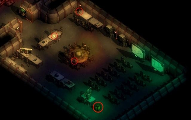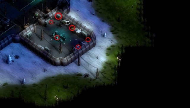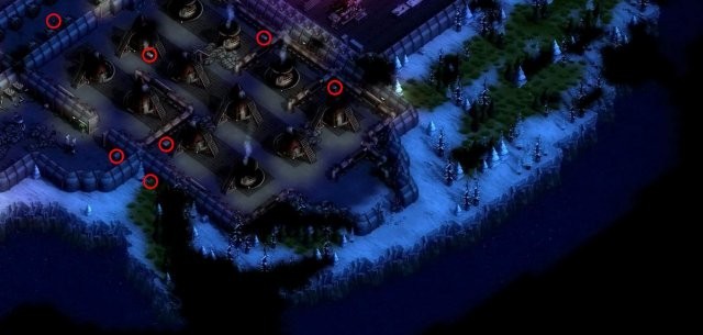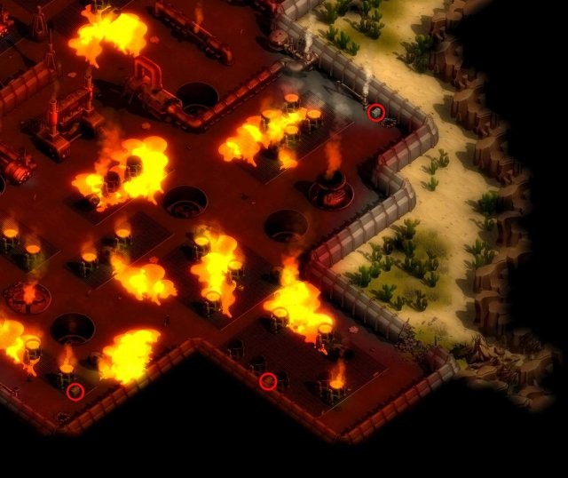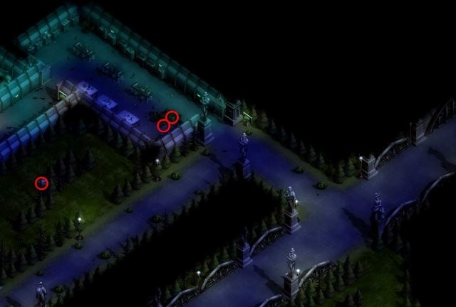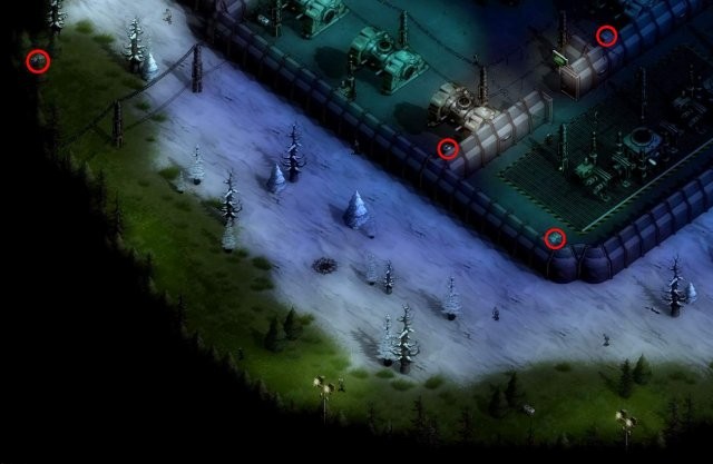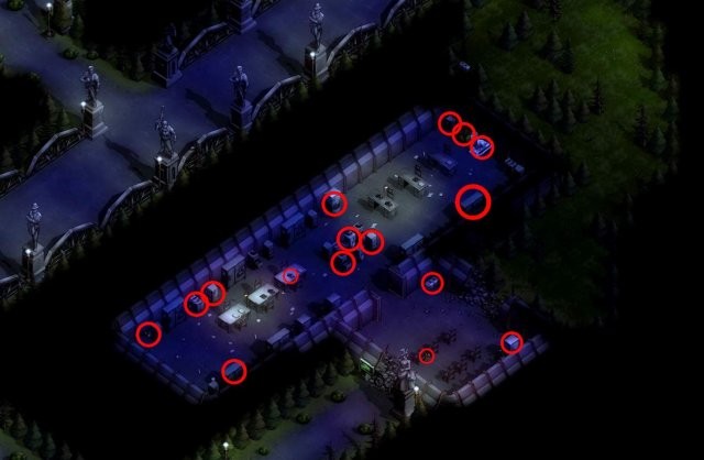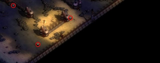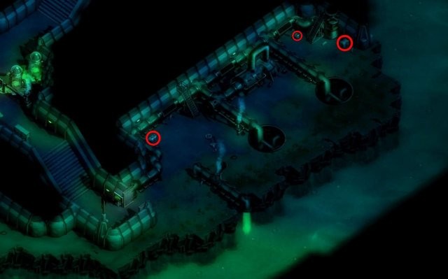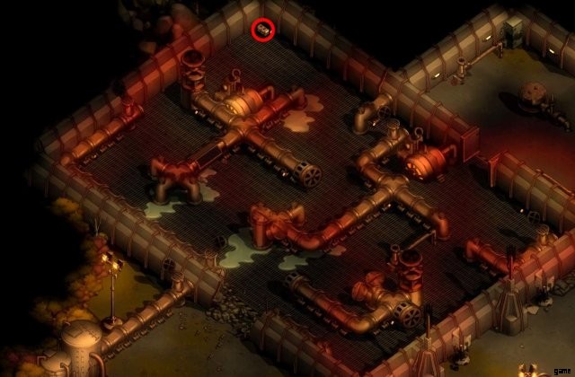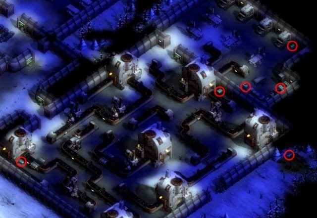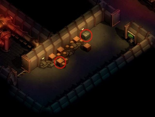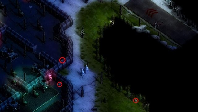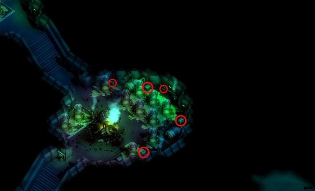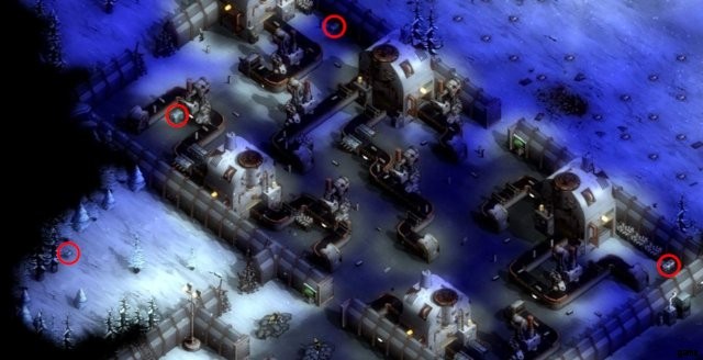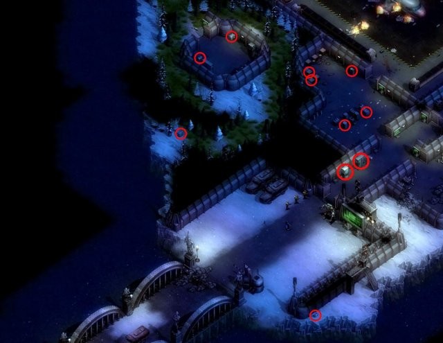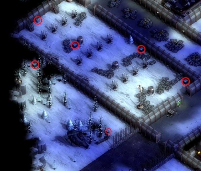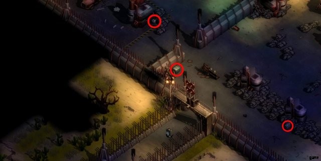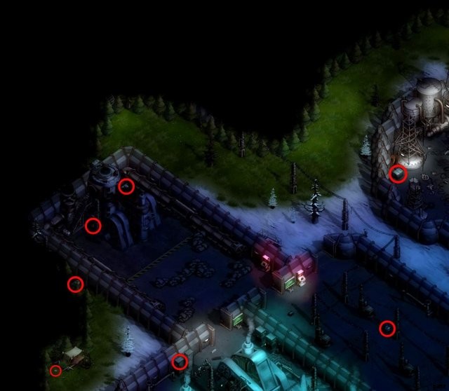 レベルの概要 (赤い丸は収集品/消耗品です)。