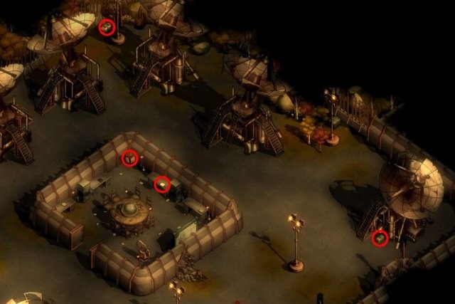 すべてのアイテムがどこにあるかの概要 (赤い丸)。