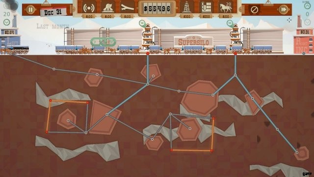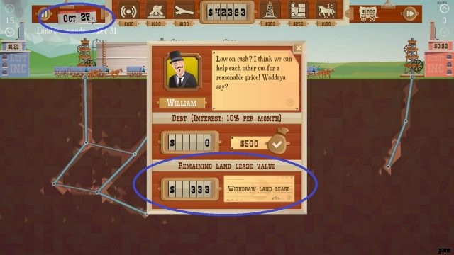 まず、ダウザー 2 個とモグラ 3 個を均等に広げます。レベルの終わりに向かって、できるだけ多くのオイルを貯蔵することを目指してください。ここから先は、貯められるオイルの量を最大限にしたいので、リグとストレージの配置が重要です。すべてのオイルが使い果たされたら、リグのバルブを閉じ、最も近い、または現時点でより高い価格の会社のリンクに接続し、ガス ポケットに接続します。結果として生じる高値で石油を販売します。これを行うには、少なくとも 1 か月かかることが最善です。