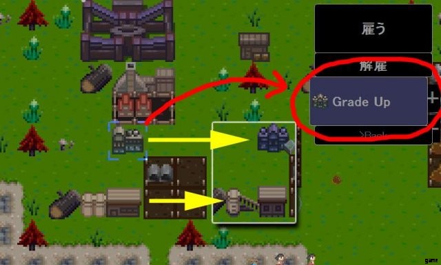 石と砂があるメイソン センターとクレイ マイナー センターを建設します。建設が完了したら、それらの建物を右クリックすると、<グレードアップ> メニューが表示されます。