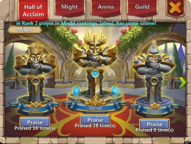 マイトランキングとアリーナランキングの上位3名は、殿堂入りを果たします。他の人は、ホール オブ アクレイムでトップ ランクのプレーヤーを称賛するかもしれません。