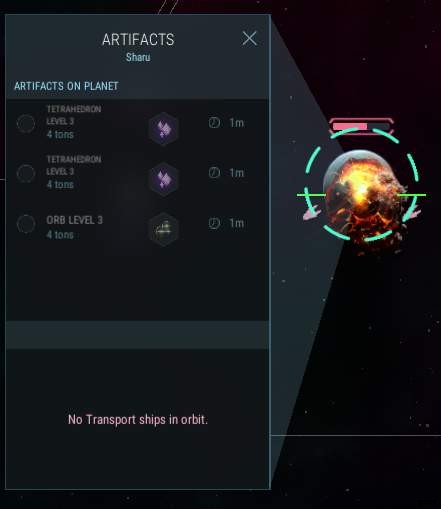 別の資金源は、赤色巨星の周りの太陽系からのアーティファクトです。過去の(または過去の)文明のかけがえのない残骸が略奪されると、それらは分解され、コンポーネントに直接リサイクルされます。ただし、設計図とより多くのお金と水素は、アーティファクトの探索を提供します.