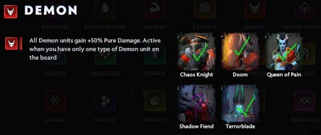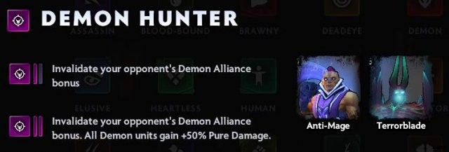 これは単純に、デーモンの数が多いほど、デーモン ハンターのダメージが増加します。しかし、完全なデーモン ハンター アライアンス (2 つ) を取得すると、デーモンは 1 つのデーモン制限を無視して、デーモン アライアンス 50% の純粋なダメージを与えます。
