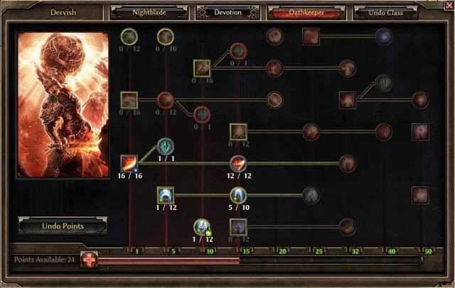 ゲームの開始時に必要なのは、もちろん攻撃スキルです。したがって、正義の熱意にいくつかのポイントを入れてください。次に、オースキーパーをレベル 15 にブーストし、ポイントを奉献に入れます。