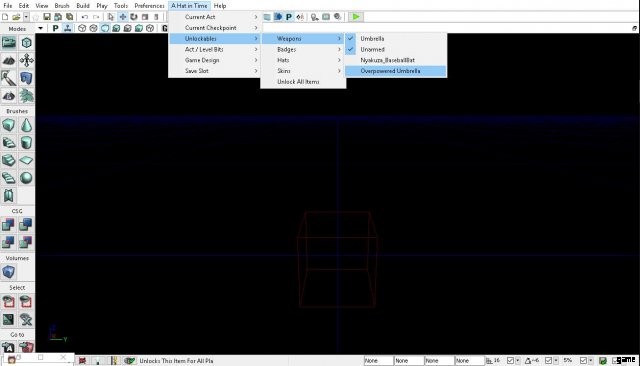これらの手順の後、エディターを閉じて、Hat In Time を開きます。これは、私が見たものから、帽子と弓の子供の両方で機能します.傘は、最初に受け取った通常のものと見た目は変わりません。ただし、与えるダメージははるかに高くなります。通常のマフィアを一発撃つことができます。