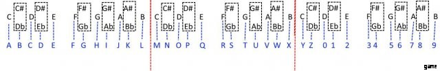 文字と数字の最初のマッピングに注意を払うと、問題があることがわかります。音符が 3 つのオクターブのどれに属しているかをどのように判断するのでしょうか?