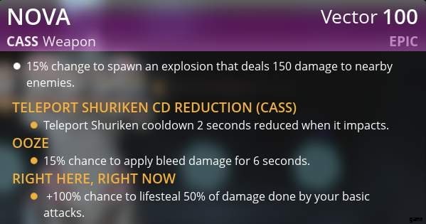 同じ効果を互いにオーバーライドする DoT 武器とは異なり、Nova は代わりに、発動するたびに個々の生の爆発を生成し、Nova 効果が発動するほどダメージ出力を増加させます。