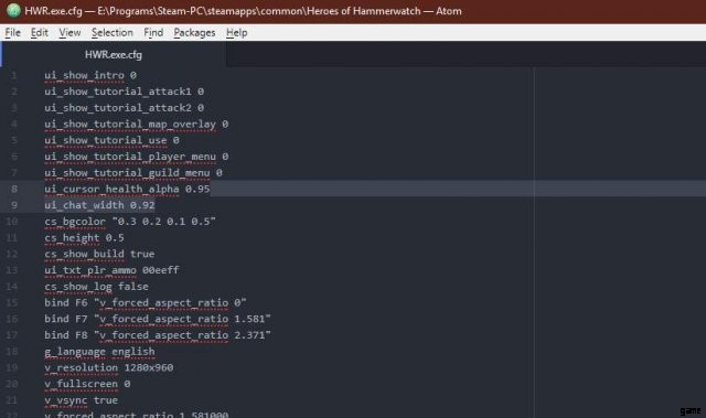 上記のスクリーンショットで気づいた場合は、ゲームのアスペクト比を変更するためのカスタム キー バインドなど、他の変数が構成ファイルに含まれています。奇妙に聞こえるかもしれませんが、これは実際には画面をズームインおよびズームアウトします。これは、ゲームがピクセル スケーリング (1:1、2:1、3:1 など) の数値比率を維持しようとするためです。縦横比を広げて画面を一気に広げます。