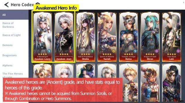 同じヒーローの基本バージョンと覚醒バージョンを同じチームにすることはできません。 (ex. ジャンと覚醒ジャン)