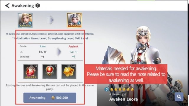 覚醒できるヒーローは、+6の強化を持つ6つ星である必要があります。