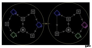 次に、矢印に沿ってパスを下って青いひし形に到達します。これは、Sentinel が標準 (緑) または高度な (青) 能力のいずれかを実行できることを示します。これは、インベントリにある場合、24 の能力 (12 の標準または 12 の高度) から選択できることを意味します。 Sentinel によってアビリティが実行されると、アビリティはパスをたどり、矢印をたどり続けます。