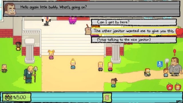 - 教室に戻って、最後のリンゴを食べてください。スティービーが入ってきて通帳をくれます。