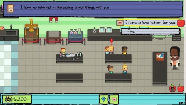 - シンディと話してください。シンディは「スマート」クラスの 2 階にいるフェリックスに届けるラブレターをくれます。ホールパスを使用して教室を出て、2 階に上がります。